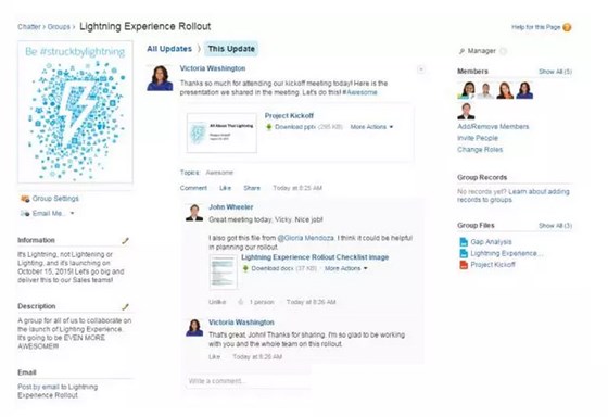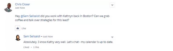但也许Salesforce协同的最好的地方是他可以存储起来为未来做参考。而不是存储在个人的电子邮箱或是在走廊的谈话中消失。所有的协作历史可以在Salesforce进行访问和查询。这样,在Salesforce中的协同可以成为企业的知识存储库,未来会帮助你获取和共享相关信息,你的成员参与的越多就会为企业增加更多的价值。