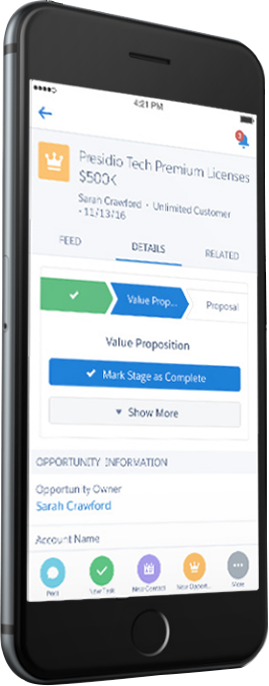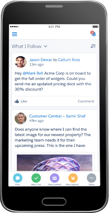 Salesforce将所有销售信息汇集于销售管理系统中,让销售团队的每个成员都能基于最新的信息来安排销售工作。信息的及时更新,能让销售人员更轻松地设定任务优先级,更迅速地做出决策。而且这些操作可以在笔记本、电脑或手机等任意设备上直接进行,让所有销售进程尽在掌握之中。
