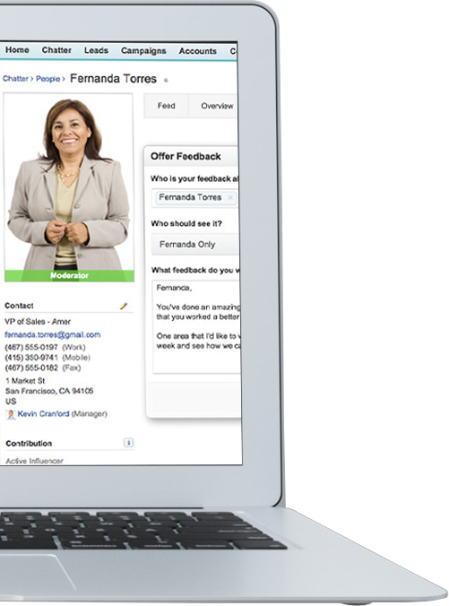 Sales Cloud功能 - 销售业绩管理分析系统 使用Work.com对销售业绩进行管理分析,让销售人员获得更好的培训、激励,促使团队更好地合作。 Salesforce销售业绩管理系统可让您提升业务的一致性并达成更多交易。 分析销售业绩,管理销售趋向 以结果为导向,激励销售代表 通过Salesforce销售业绩管理系统,可以直接激励您的销售团队或对销售团队进行培训。通过培训,可以帮助更多销售代表达成每月的配额。您还可以通过销售团队管理工具公开表彰业绩出众者并分享他们达成交易的方法。 将销售目标直接与Salesforce数据关联 通过了解您在Salesforce中的所有销售数据,您可以制定与Salesforce报表直接相关的业绩目标,从而轻松跟踪和衡量您的月进度、季进度和年进度。 增强公司全体人员的参与感 成功的销售与企业各个层级的人员息息相关。Salesforce提供Chatter上客户和联系人的每条对话记录,方便您分析并分享见解、获得相关文件等。 使用拖放操作简化业绩总结 专注于销售,而不是专注于书面工作。无论一个月、一个季度,还是刚完成项目,或是刚达到目标,您可以选择对任意的时间段进行业绩评估。 |