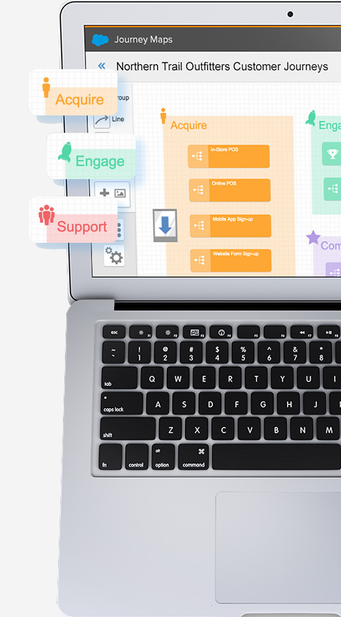 建立客户个性化品牌体验旅程,从线上到实体店,销售到客服,全方面地与客户进行接触,推进营销流程。